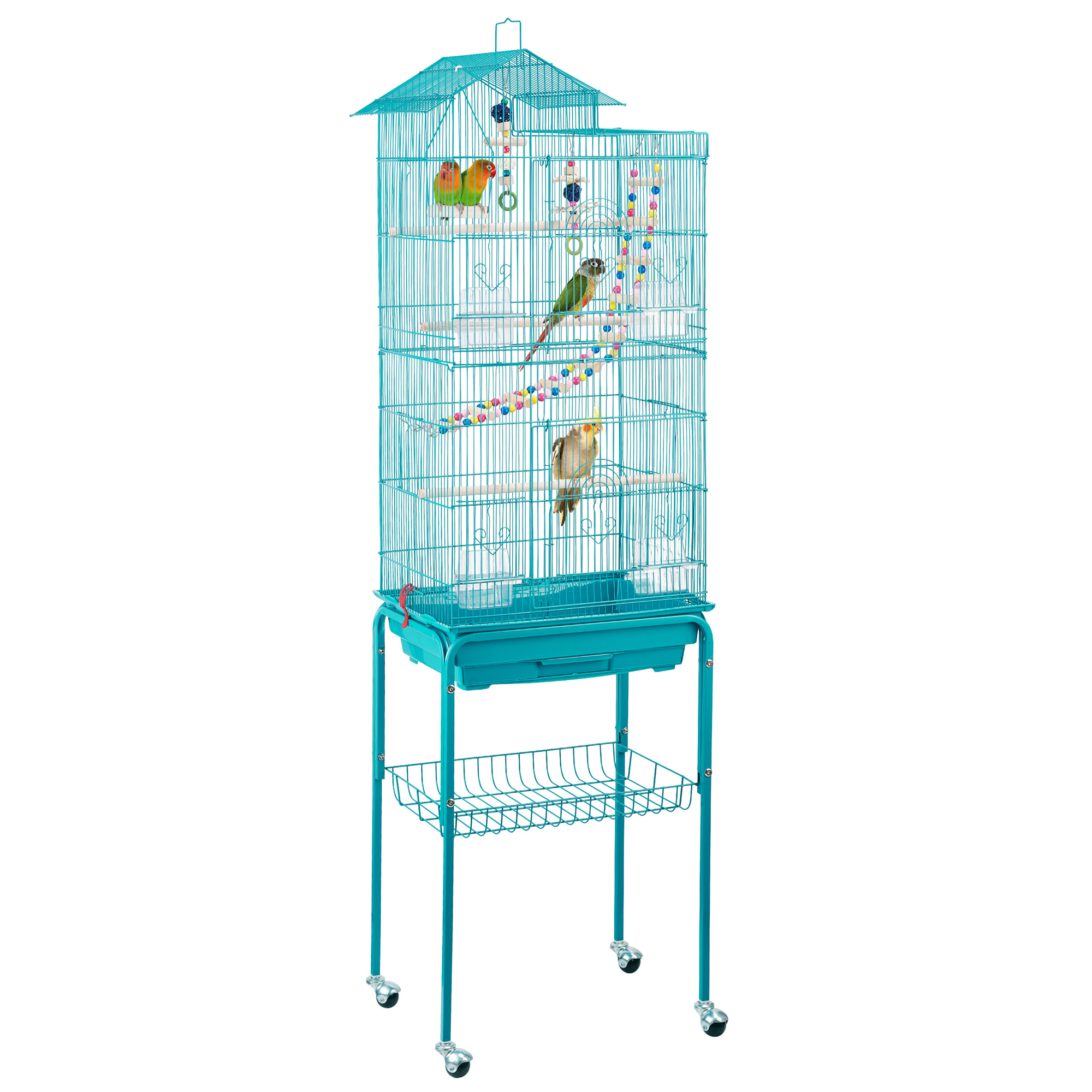 Topeakmart Teal Blue Metal Bird Cage With Ladder Toy And Rolling Detachable Stand 62 4 H Petco
